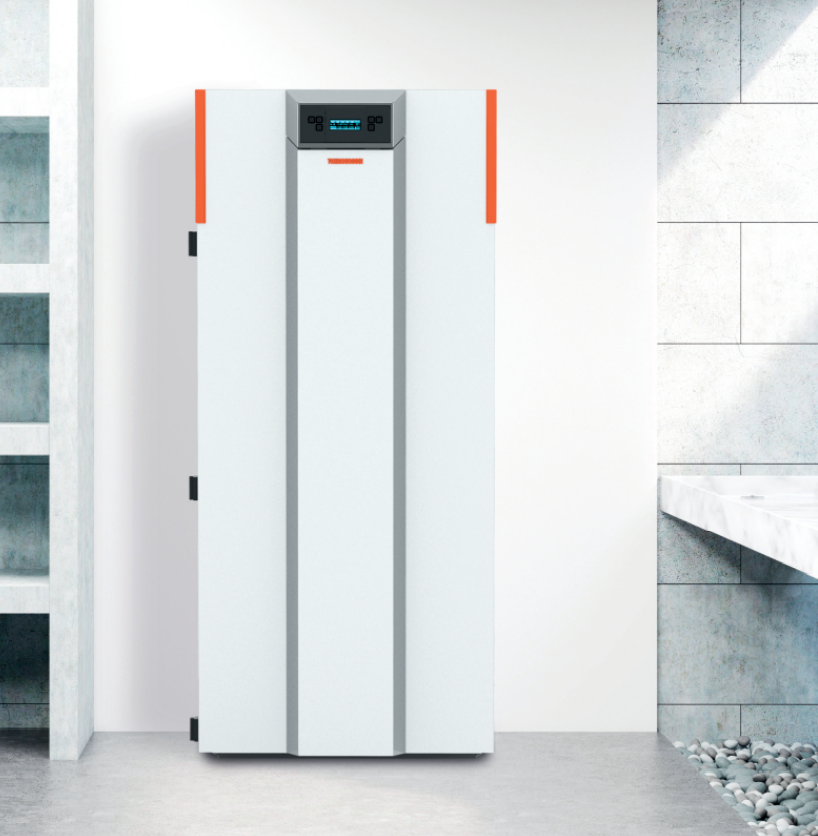 Compact S32 GT5 è una caldaia a pellet dal design contemporaneo con 32 kW di potenza, ideale per il riscaldamento domestico diventa il cuore dell’impianto. Risulta facilmente integrabile grazie alle misure compatte. L’innovativo bruciatore motorizzato con tecnologia brevettata PELLETPOWER® mantiene la resa termica elevata e costante nell’arco dell’intera giornata: mantenere il bruciatore pulito significa ridurre sia la manutenzione ordinaria che i costi di combustibile, con un rapido ammortamento del generatore. Grazie all’efficiente scambiatore di calore THERMOCORE®, formato da un fascio tubiero dotato di turbolatori e grazie al funzionamento automatico con modulazione di potenza, Compact ottiene un rendimento superiore al 93%. La robustezza del corpo caldaia, la silenziosità, la facilità di gestione, l’interfaccia con serbatoi aggiuntivi, la pulizia semplificata e le basse emissioni fanno della gamma Compact una soluzione alternativa ed ecologica al tradizionale sistema di riscaldamento domestico.
