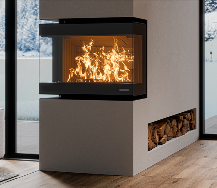 Panorama è l’equilibrio perfetto tra un inserto e un caminetto, racchiude tutti i vantaggi economici di un inserto senza rinunciare al fascino del fuoco panoramico di un caminetto. Facile da installare grazie al piedistallo, versatile nell’uso perché a convenzione naturale oppure ventilato e canalizzabile nei locali adiacenti (optional Airbox4). Ideale per una soluzione a penisola oppure semplicemente per tutti coloro che hanno necessità di separare due ambienti. Camera di combustione anti-rottura interamente in ghisa, scambiatore di calore in acciaio inox e ghisa, ampie dimensioni per bruciare ciocchi di legno >50 cm di lunghezza, cassetto cenere estraibile.