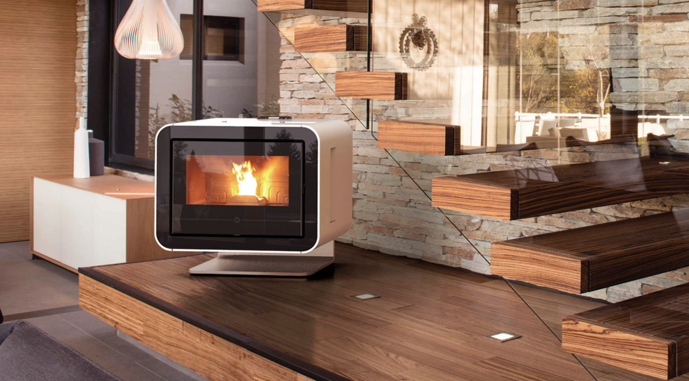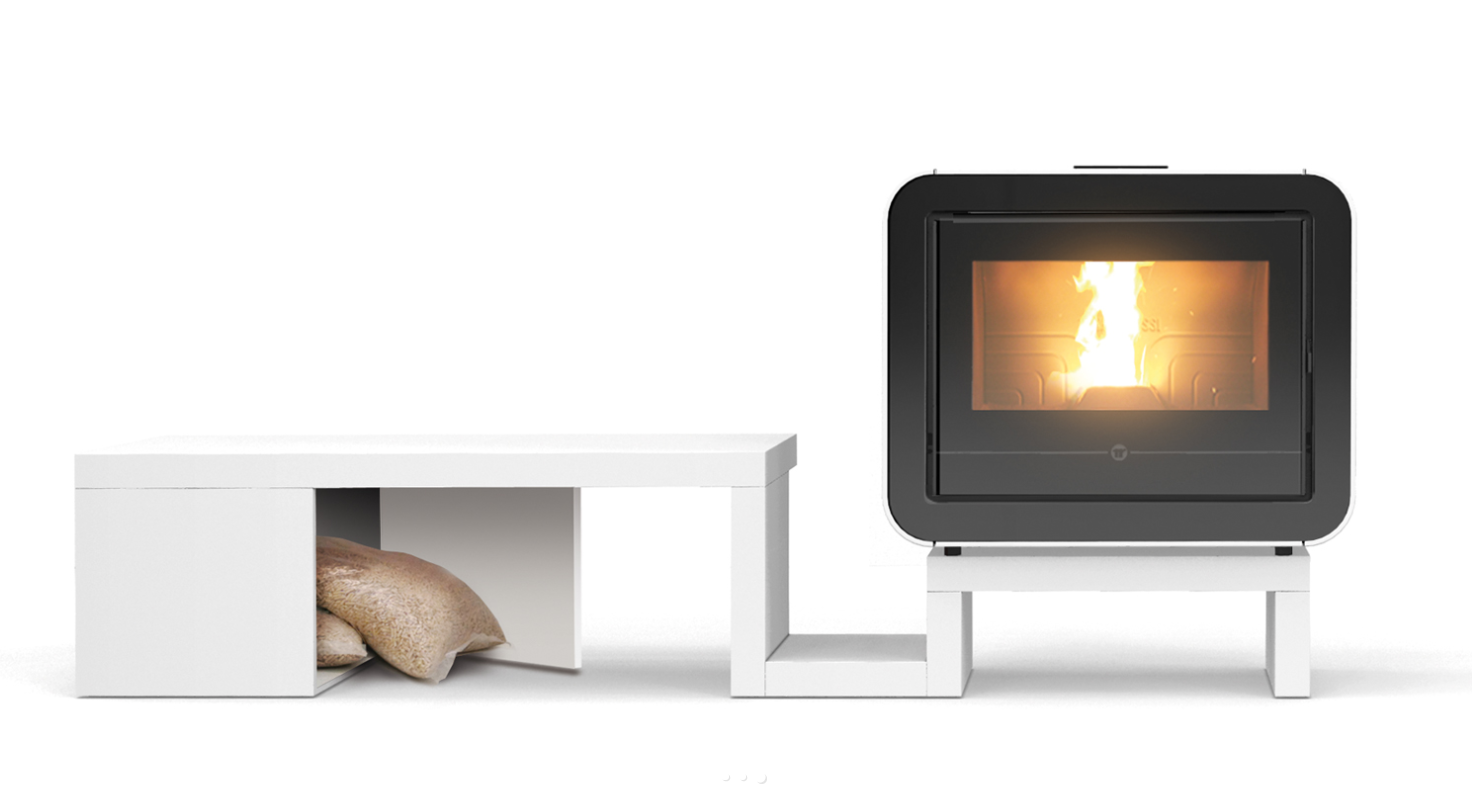 Stufa a pellet canalizzabile inseribile all’interno di un caminetto esistente grazie alla ridotta altezza, inferiore a 68 cm. Appoggiata a terra con l’ausilio del piedistallo (optional) diventa un elemento d'arredo. L’accessorio «Living» (optional) permette all’utilizzatore di integrare Scuba con una elegante seduta reversibile dotata di vano porta pellet a scomparsa.