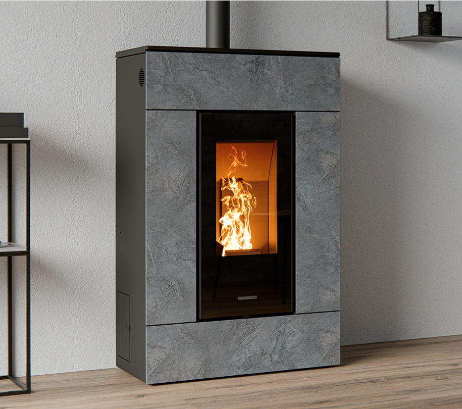 SlimQuadro Lumia Stone stufa a convezione naturale, ventilata e canalizzabile, Thermorossi