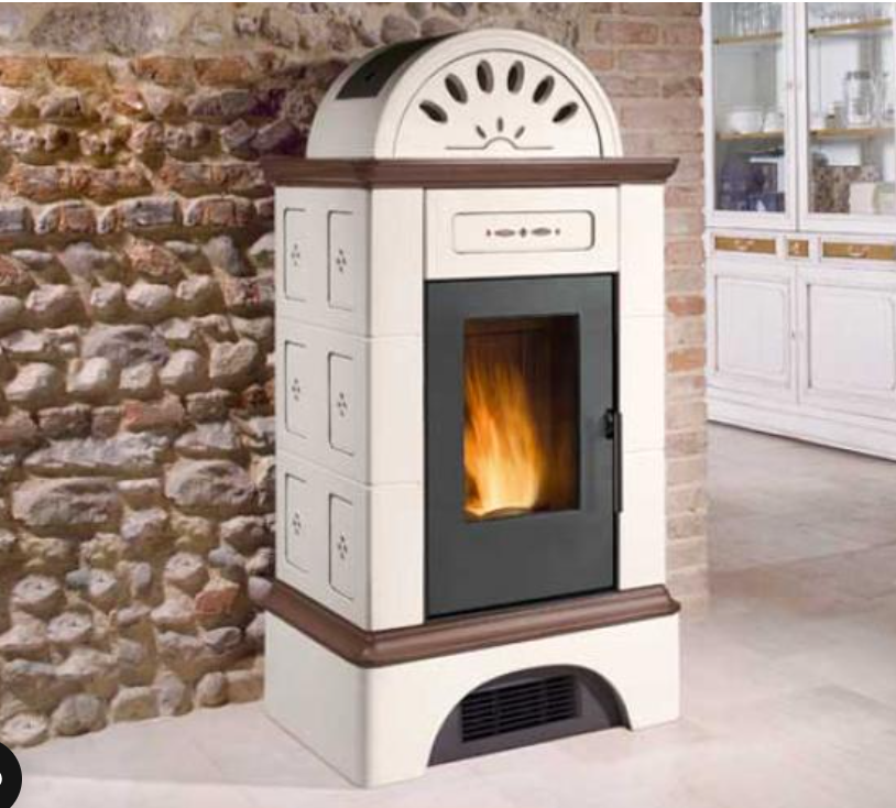 Stubotto a Pellet modello Brunico - 5 Stelle, con rivestimento in Maiolica, Piazzetta