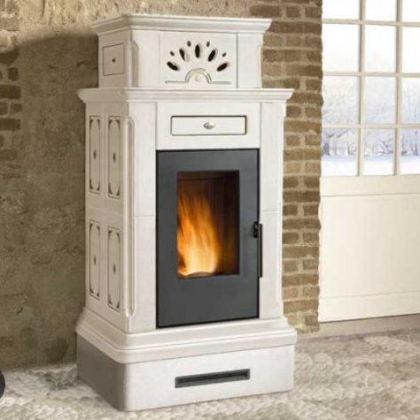 Stubotto a Pellet modello CANAZEI - 5 Stelle, con rivestimento in Maiolica, Piazzetta