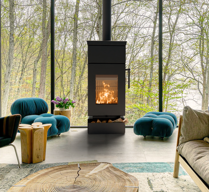Stufa a legna salvaspazio, dalle linee minimali e l'aspetto essenziale, per creare un ambiente rilassante e portare armonia nello spazio circostante. Contraddistinta da un accumulo nella parte superiore, per dilatare nel tempo la propagazione del calore, anche a fuoco spento (Tecnologia TimeXtend®). Nella parte inferiore, un vano estraibile per custodire gli attrezzi.